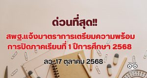 ด่วนที่สุด มาตราการเตรียมความพร้อมการปิดภาคเรียนที่ 1 ปีการศึกษา 2568 ลว. 17 ตุลาคม 2568