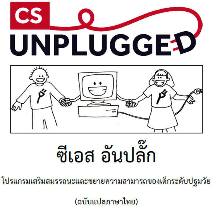 สำหรับคุณครูสอนวิทยาการคำนวณ ครูอาชีพดอทคอม หนังสือสอน Coding แบบไม่เสียบปลั๊ก “Computer Science แบบอันปลั๊ก (CS Unplugged)” สนับสนุนโดย Google Inc. ถูกแปลเป็นฉบับภาษาไทยแล้ว โดยอาจารย์และนักศึกษา SIIT ของม.ธรรมศาสตร์ เป็นผู้แปล เป็นหนังสือที่ถูกนำมาใช้สอน Computer Science ในต่างประเทศ ในเรื่องของ การเขียนโปรแกรมแบบไม่ต้องเสียบปลั๊ก ไม่ต้องใช้คอมพิวเตอร์ ซึ่งหลักการนี้มีมานานแล้ว เป็นเรื่องที่ทำได้จริงครับ ไม่มีคอม เราก็สอน CS ได้ เนื้อหาก็เหมาะสำหรับเด็กตั้งแต่ 6 ปีขึ้นไป โดยหนังสือนี้จะแบ่งออกเป็น 6 บท ตั้งแต่พื้นฐานของคอมพิวเตอร์ เช่น เลขฐาน 2 , สีจากตัวเลข , การบีบอัดข้อมูล , อัลกอรีทึม , การเรียงลำดับ , การจัดเรียงเครือข่าย และอื่นๆ อีกมากมาย หหนังสือนี้ มีความหนา 249 หน้า ครับ ซึ่งหากสนใจเราสามารถ Download ได้จาก Link นี้
