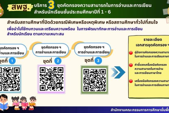 ดาวน์โหลด ชุดคัดกรองความสามารถในการอ่านและการเขียนของนักเรียน ชั้น ป. 1-6 โดย สพฐ.
