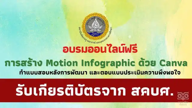 อบรมออนไลน์ฟรี หลักสูตรการสร้าง Motion Infographic ด้วย Canva วันที่ 10 พฤษภาคม 2566 รับเกียรติบัตรฟรี โดยสถาบันพัฒนาครู สคบศ.