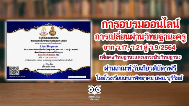 การอบรมออนไลน์การเปลี่ยนผ่านวิทยฐานะครูจาก ว.17, ว.21 สู่ ว.9/2564 เพื่อคงวิทยฐานะและยกระดับวิทยฐานะ ผ่านเกณฑ์ รับเกียรติบัตรฟรี โดยโรงเรียนสะแกพิทยาคม สพม. บุรีรัมย์