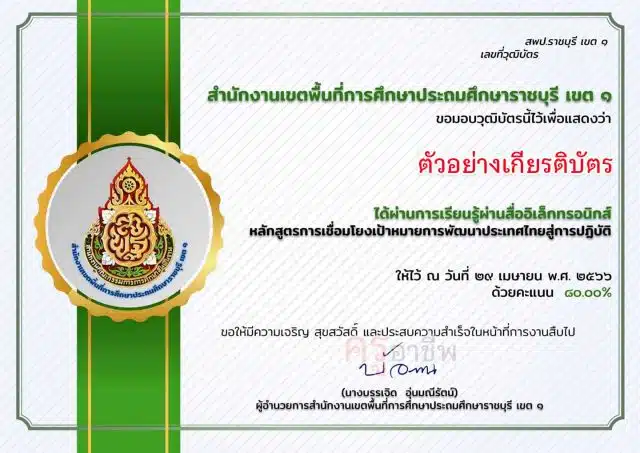 อบรมออนไลน์ หลักสูตร การเชื่อมโยงเป้าหมายการพัฒนาประเทศไทยสู่การปฏิบัติ ผ่านเกณฑ์ 80% รับเกียรติบัตรทางอีเมล โดย สพป.ราชบุรี เขต 1