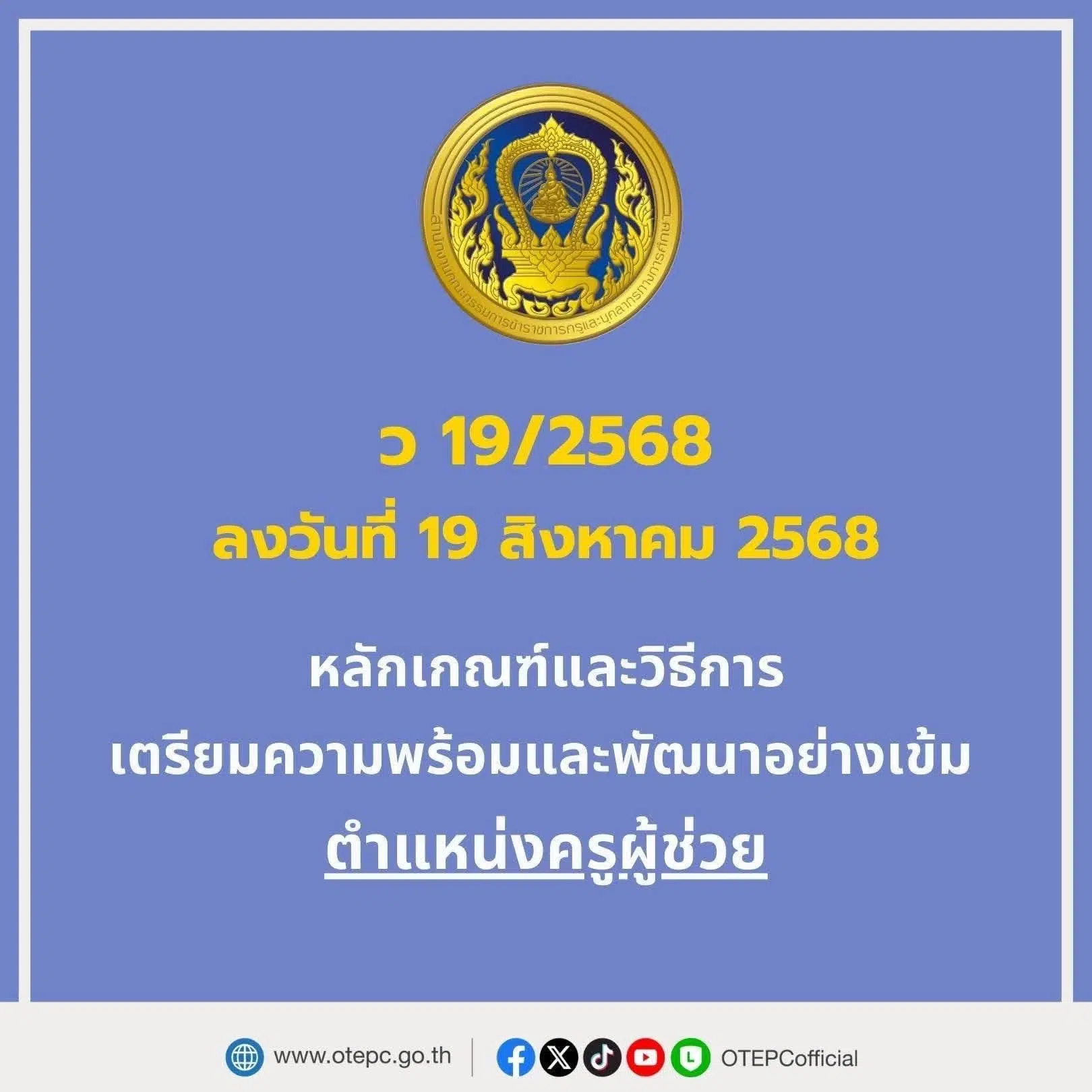 📣 ก.ค.ศ. ประกาศ ว 19/2568 หลักเกณฑ์และวิธีการเตรียมความพร้อมและพัฒนาอย่างเข้ม ตำแหน่งครูผู้ช่วย
