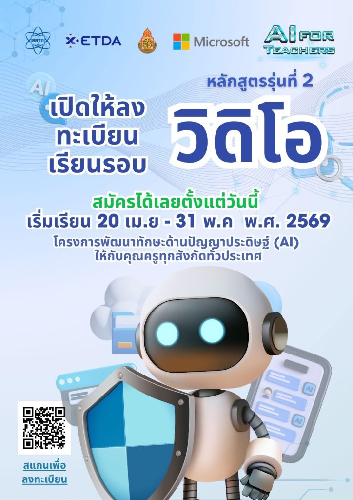 มาแล้ว!! อบรมออนไลน์ฟรี โครงการ AI for Teachers รุ่นที่ 2 ระหว่างวันที่ 8 เมษายน – 31 พฤษภาคม 2569โดยไม่เสียค่าใช้จ่าย พร้อมรับเกียรติบัตร จาก สพฐ. สสวท. สพอธ และMicrosoft (ประเทศไทย)
