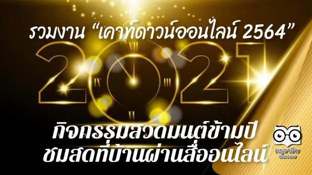 รวมงาน “เคาท์ดาวน์ออนไลน์ 2564” และกิจกรรมสวดมนต์ข้ามปี ชมสดที่บ้านผ่านสื่ออนไลน์ ด้วยสถานการณ์การแพร่ระบาดไวรัสโควิด-19 ทำให้การจัดกิจกรรมเคานต์ดาวน์ในหลายพื้นที่ต้องประกาศยกเลิก ซึ่งมีบางแห่งได้ปรับรูปแบบใหม่โดยจัดงานผ่านช่องทางสื่อออนไลน์และทีวีดิจิทัลแทน บทความนี้ ครูอาชีพดอทคอม จึงได้รวบรวมสถานที่จัดงานเคานต์ดาวน์ 2564 รูปแบบใหม่มาให้ทุกคนติดตามชมจากที่บ้านไปพร้อมกัน โดยผ่านช่องทางสื่อต่างๆ ดังนี้