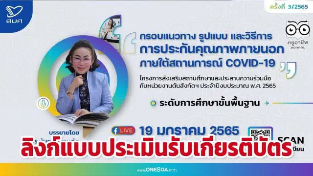 ลิงก์แบบประเมินรับเกียรติบัตร “กรอบแนวทาง รูปแบบ และวิธีการประกันคุณภาพภายนอกภายใต้สถานการณ์ COVID-19” ระดับการศึกษาขั้นพื้นฐาน วันที่ 19 มกราคม 2565 พร้อมรับเกียรติบัตร จาก สมศ.