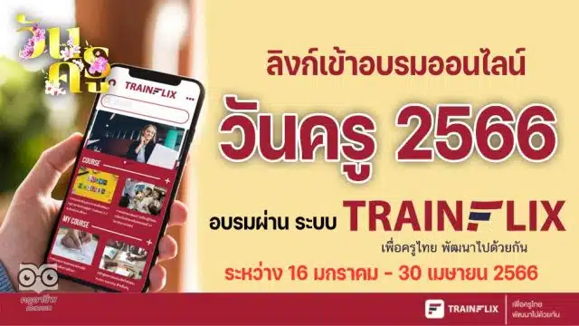 ลิงก์เข้าอบรมออนไลน์ วันครู 2566 คู่มือการเข้าใช้งานอบรมผ่าน ระบบ trainflix อบรมฟรี วันครู ครั้งที่ 67 พ.ศ. 2566