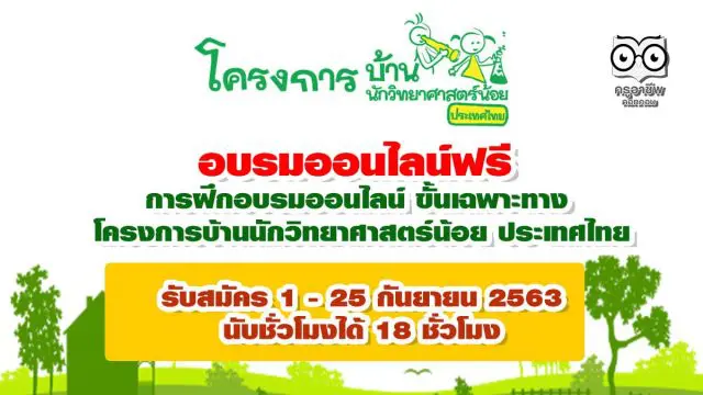 หลักสูตรอบรมออนไลน์ ขั้นเฉพาะทาง โครงการบ้านนักวิทยาศาสตร์น้อย ประเทศไทย ของศึกษานิเทศก์และครู รับสมัคร 1 – 25 กันยายน 2563 นับชั่วโมงได้ หลักสูตรการฝึกอบรมออนไลน์ขั้นเฉพาะทาง โครงการบ้านนักวิทยาศาสตร์น้อย ประเทศไทย (A Professional Development for The Little Scientist House Thailand : Special Topics) คุณสมบัติสำคัญคือ ต้องผ่านการฝึกอบรมขั้นพื้นฐาน โดยจะต้องแนบไฟล์สำเนาเกียรติบัตรด้วย
