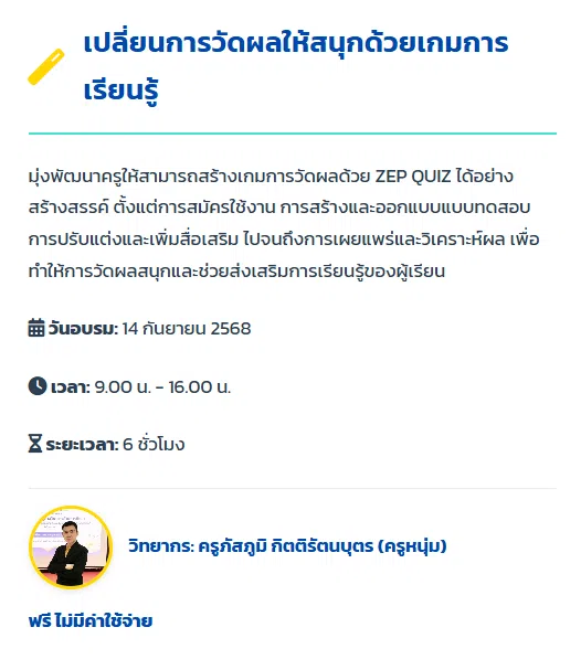 หัวข้อ: เปลี่ยนการวัดผลให้สนุกด้วยเกมการเรียนรู้