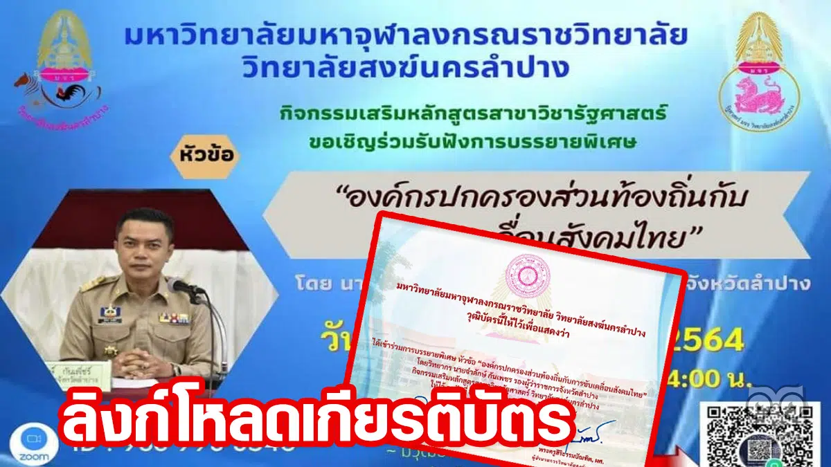 ดาวน์โหลดเกียรติบัตร การบรรยายพิเศษหัวข้อ “องค์กรปกครองส่วนท้องถิ่นกับกแบบประเมินรับเกียรติบัตร การบรรยายพิเศษหัวข้อ “องค์กรปกครองส่วนท้องถิ่นกับการขับเคลื่อนสังคมไทย” วันที่ 25 กันยายน 2564 จัดโดยวิทยาลัยสงฆ์นครลำปาง