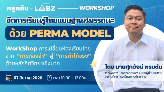 อบรมออนไลน์ฟรี จัดการเรียนรู้ไทยแบบฐานสมรรถนะได้ด้วย PERMA MODEL วันที่ 7 มีนาคม 2569 รับเกียรติบัตร Starfish Labz