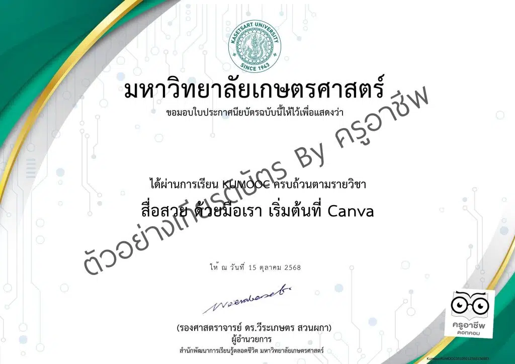 สายออกแบบมือใหม่ห้ามพลาด! KU MOOC จาก มหาวิทยาลัยเกษตรศาสตร์ เปิดคอร์สออนไลน์เรียนฟรี วิชา “สื่อสวย ด้วยมือเรา เริ่มต้นที่ Canva” บอกเลยว่าดีงามมากกกก เพราะสอนตั้งแต่พื้นฐานเหมือนจับมือทำ ได้ลองฝึกออกแบบสื่อหลากหลาย ช่วยให้เราครีเอตผลงานได้อย่างสร้างสรรค์และสะดวกมากขึ้น