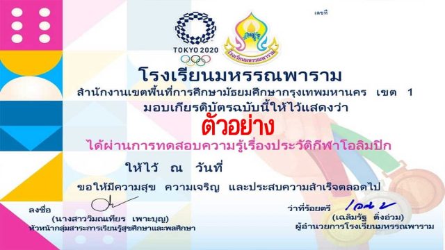 แบบทดสอบความรู้เรื่องประวัติกีฬาโอลิมปิก ผ่านเกณฑ์ ร้อยละ 80 จึงจะได้รับเกียรติบัตรทางอีเมล โดยโรงเรียนมหรรณพาราม
