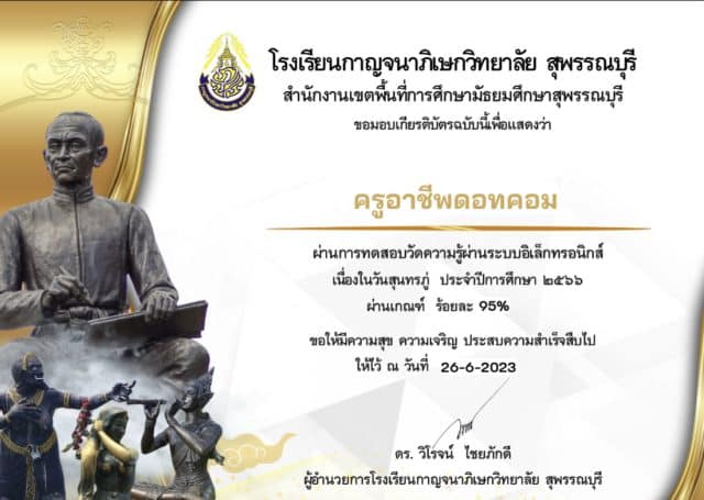 ขอบคุณที่มา โรงเรียนกาญจนาภิเษกวิทยาลัย สุพรรณบุรี