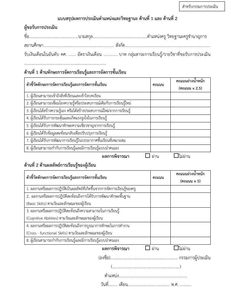 สำหรับคุณครูที่จะขอมีหรือเลื่อนวิทยฐานะ สามารถใช้เกณฑ์เป็นแนวทางในการประเมินตนเองเบื้องต้น เนื่องจากเอกสารชุดนี้คณะกรรมการระบบ DPA ใช้พิจารณา ด้านที่ 1 และ ด้านที่ 2 ใช้ในการประเมินครับ