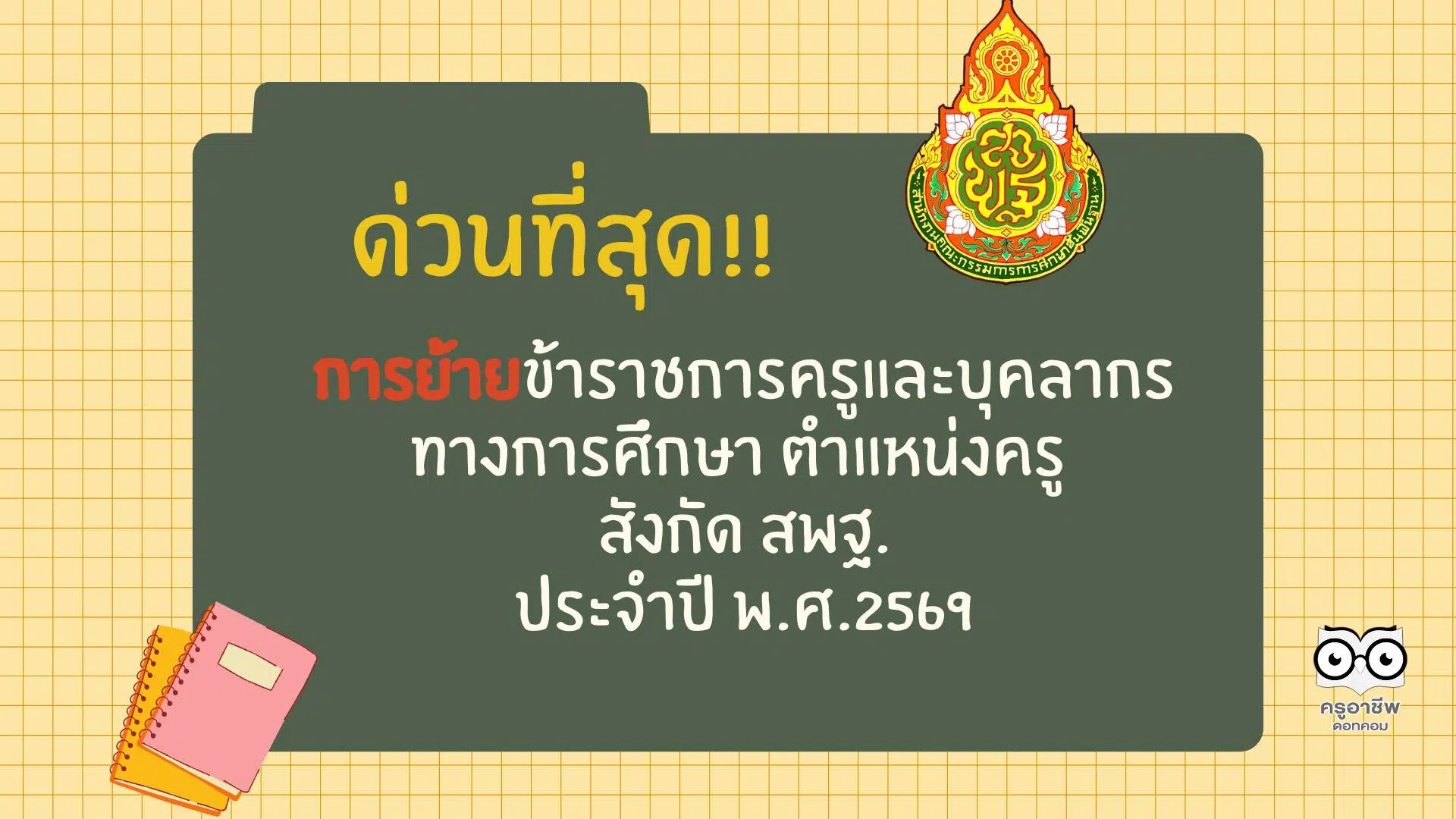 สพฐ.แจ้งหนังสือ ด่วนที่สุด เรื่อง การย้ายข้าราชการครูและบุคลากรทางการศึกษา ตำแหน่งครู สังกัด สพฐ. ประจำปี พ.ศ.2569