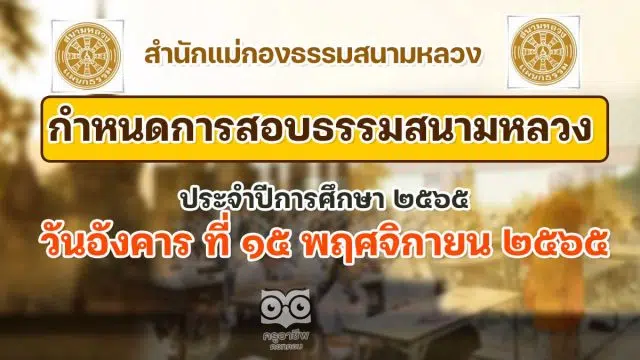 กำหนดการสอบธรรมสนามหลวง ประจำปีการศึกษา ๒๕๖๕