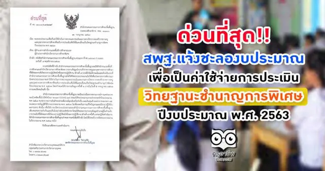 ด่วนที่สุด สพฐ.แจ้งชะลองบประมาณเพื่อเป็นค่าใช้จ่ายการประเมิน วิทยฐานะชำนาญการพิเศษ ปีงบประมาณ พ.ศ. 2563