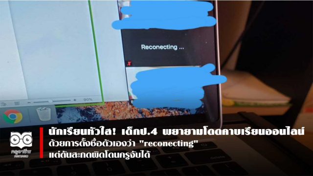 นักเรียนหัวใส! เด็กป.4 พยายามโดดคาบเรียนออนไลน์ด้วยการตั้งชื่อตัวเองว่า “reconecting” แต่ดันสะกดผิดโดนครูจับได้ นักเรียนหัวใส! เด็กป.4 พยายามโดดคาบเรียนออนไลน์ด้วยการตั้งชื่อตัวเองว่า “reconecting” (กำลังเชื่อมต่อใหม่) บนโปรแกรม Zoom เพื่อแกล้งครูว่าเน็ตตัวเองมีปัญหา เข้าเรียนไม่ได้ แต่น้องสะกดผิดเลยโดนจับได้