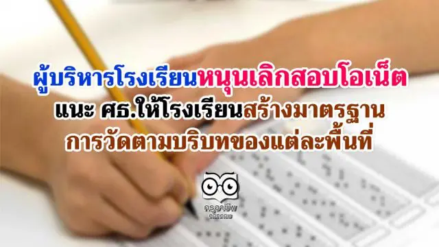 ผู้บริหารโรงเรียนหนุนเลิกสอบโอเน็ต แนะ ศธ.ให้โรงเรียนสร้างมาตรฐานการวัดตามบริบทของแต่ละพื้นที่ ซึ่งการวัดมาตรฐานจะต้องไม่สร้างความเหลื่อมล้ำด้วย