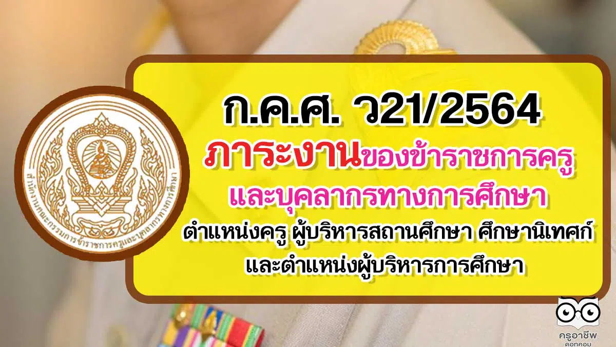 ก.ค.ศ. ประกาศภาระงานของข้าราชการครูและบุคลากรทางการศึกษา ตำแหน่งครู ผู้บริหารสถานศึกษา ตำแหน่งศึกษานิเทศก์ และตำแหน่งผู้บริหารการศึกษา ว21/2564