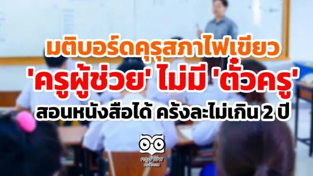 มติบอร์ดคุรุสภาไฟเขียว ‘ครูผู้ช่วย’ ไม่มี ‘ตั๋วครู’ สอนหนังสือได้ ครั้งละไม่เกิน 2 ปี แต่สอนหนังสือได้ครั้งละไม่เกิน 2 ปี ตามประกาศคณะกรรมการคุรุสภา ขณะที่ อนุมัติการ “ออก-ต่อ”ใบอนุญาตประกอบวิชาชีพทางการศึกษา 4 ประเภทรวม 11,688 ราย เฉพาะตั๋วครู 8,942 ราย