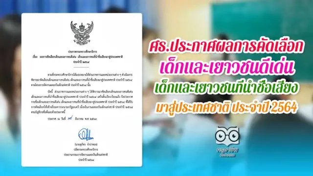 ศธ.ประกาศผลการคัดเลือก เด็กและเยาวชนดีเด่น เด็กและเยาวชนที่นำชื่อเสียงมาสู่ประเทศชาติ ประจำปี 2564