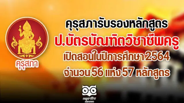 คุรุสภารับรองหลักสูตรป.บัตรบัณฑิตวิชาชีพครู สอนในปีการศึกษา 2564 จำนวน 56 แห่ง 57 หลักสูตร