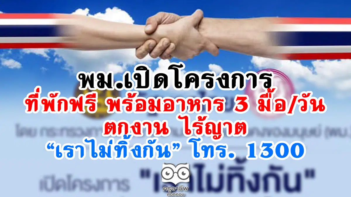 พม.เปิดโครงการ ที่พักฟรี พร้อมอาหาร 3 มื้อ/วัน ตกงาน ไร้ญาติ “เราไม่ทิ้งกัน” โทร. 1300