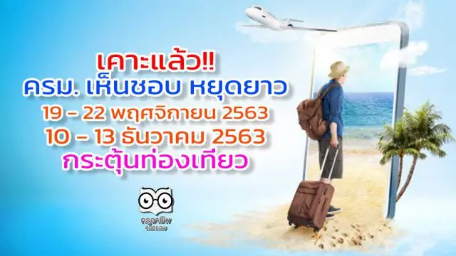 เคาะแล้ว!! ครม. เห็นชอบ หยุดยาว 19 – 22 พฤศจิกายน 2563 , 10 – 13 ธันวาคม 2563 กระตุ้นท่องเที่ยว