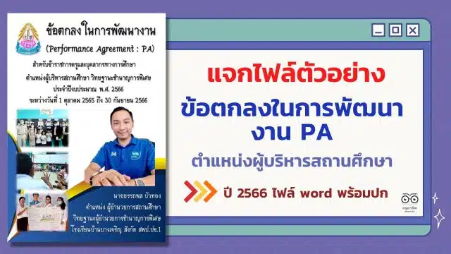 แจกไฟล์ตัวอย่าง ข้อตกลงในการพัฒนางาน PA ตำแหน่งผู้บริหารสถานศึกษา ปี 2566 ไฟล์ word พร้อมปก โดย ผอ.อรรถพล บัวทอง โรงเรียนบ้านบางเจริญ สพป.ปข.1