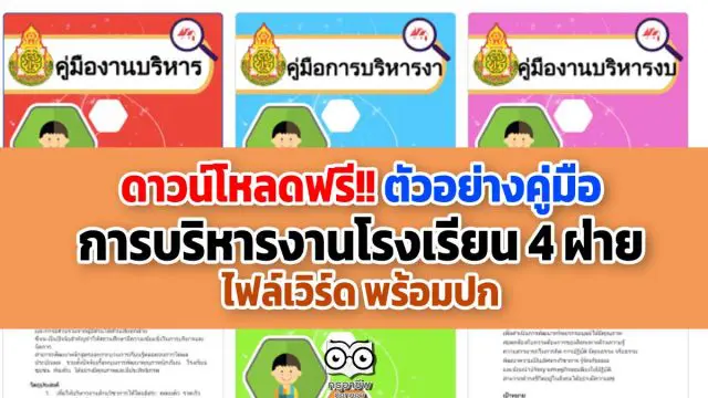 ดาวน์โหลดฟรี!! ตัวอย่างคู่มือ การบริหารงานโรงเรียน 4 ฝ่าย ไฟล์เวิร์ด พร้อมปก โดยโรงเรียนบ้านห้วงปลาไหล “สิงหะวิทยา” สำนักงานเขตพื้นที่การศึกษาประถมศึกษาพิจิตรเขต๒ ฝ่ายบริหารงานของโรงเรียน ควรมีการจัดทำ คู่มือการบริหารงาน
