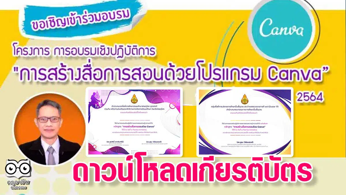 ดาวน์โหลดเกียรติบัตร การอบรมเชิงปฏิบัติการ การสร้างสื่อการสอนด้วยโปรแกรม Canva เมื่อวันที่ 4 กันยายน 2564