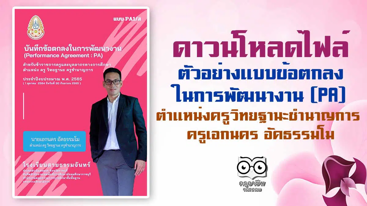 ดาวน์โหลดไฟล์ ตัวอย่างแบบข้อตกลงในการพัฒนางาน (PA) ตำแหน่งครูวิทยฐานะชำนาญการ เครดิตไฟล์ ครูเอกนคร อัคธรรมโม