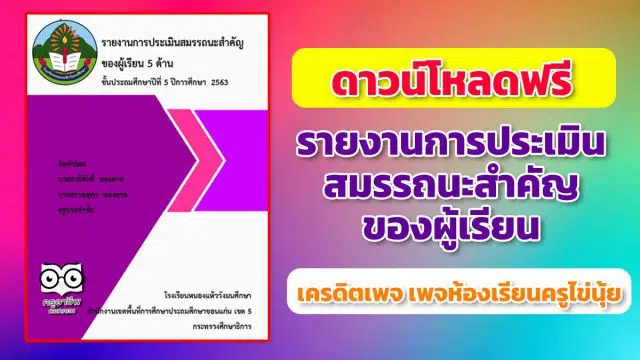 - ดาวน์โหลดฟรี รายงานการประเมินสมรรถนะสำคัญของผู้เรียน ไฟล์ Excel แก้ไขได้ เครดิตเพจ ห้องเรียนครูไข่นุ้ย