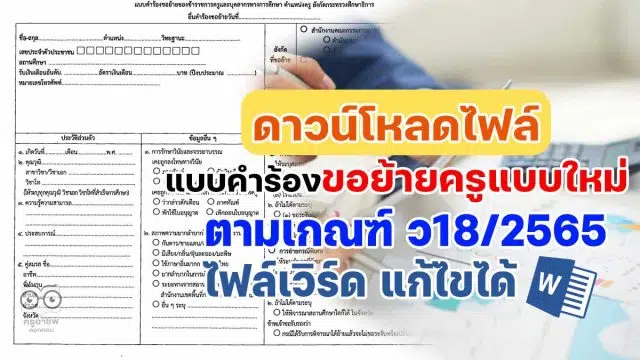 ดาวน์โหลด แบบคำร้องขอย้ายครูแบบใหม่ doc 2566 ไฟล์เวิร์ด แก้ไขได้ ตามเกณฑ์ ว18/2565 สังกัดกระทรวงศึกษาธิการ