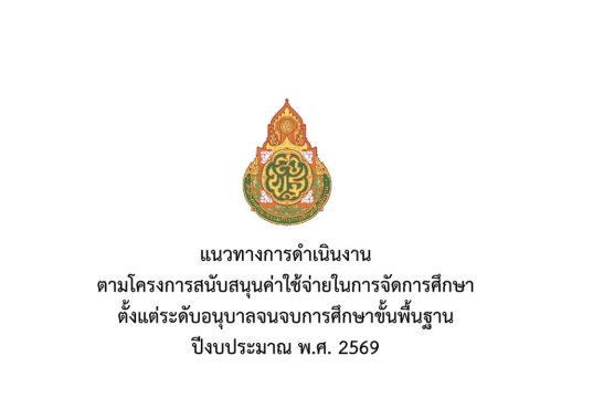 ดาวน์โหลดแนวทางการดำเนินงานเงินอุดหนุนรายหัว 2569 โครงการสนับสนุนค่าใช้จ่ายในการจัดการศึกษาขั้นพื้นฐาน ปีงบประมาณ พ.ศ. 2569