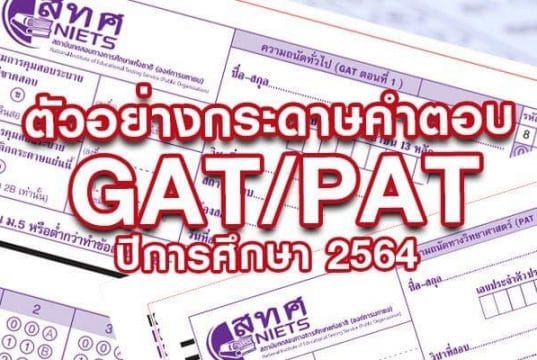 ตัวอย่างกระดาษคำตอบ GAT/PAT ปีการศึกษา 2564