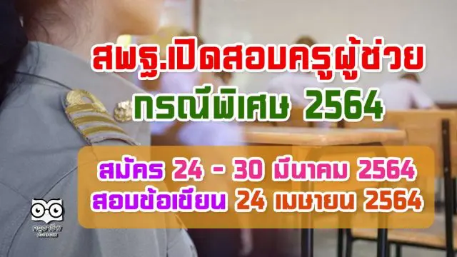 มาแล้ว!! สพฐ.เปิดรับสมัครสอบครูผู้ช่วย กรณีพิเศษ 2564 วันที่ 24 – 30 มีนาคม 2564 สอบข้อเขียน 24 เมษายน 2564