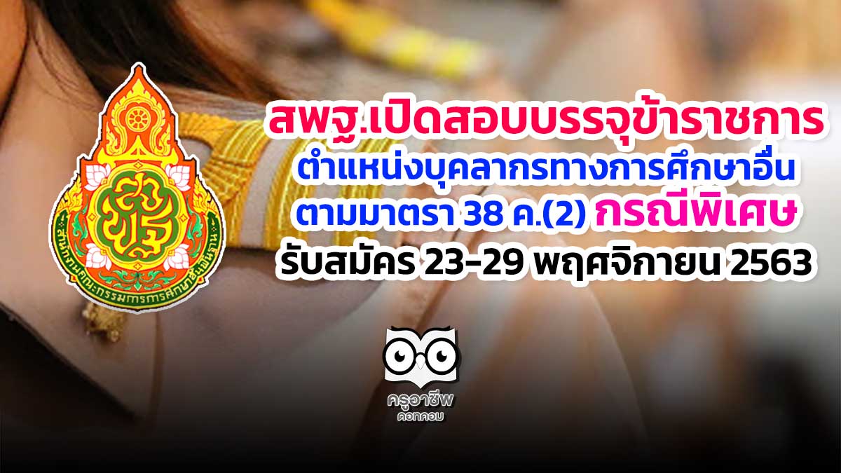 สพฐ.เปิดสอบบรรจุข้าราชการ ตำแหน่งบุคลากรทางการศึกษาอื่นตามมาตรา 38 ค.(2) กรณีพิเศษ รับสมัคร 23-29 พฤศจิกายน 2563 การคัดเลือกบุคคลเพื่อบรรจุและแต่งตั้งเป็นข้าราชการครูและบุคลากรทางการศึกษา ตำแหน่งบุคลากรทางการศึกษาอื่นตามมาตรา 38 ค.(2) ตำแหน่งประเภททั่วไป ระดับปฏิบัติงาน กรณีที่มีความจำเป็นหรือมีเหตุพิเศษ สังกัด สพฐ