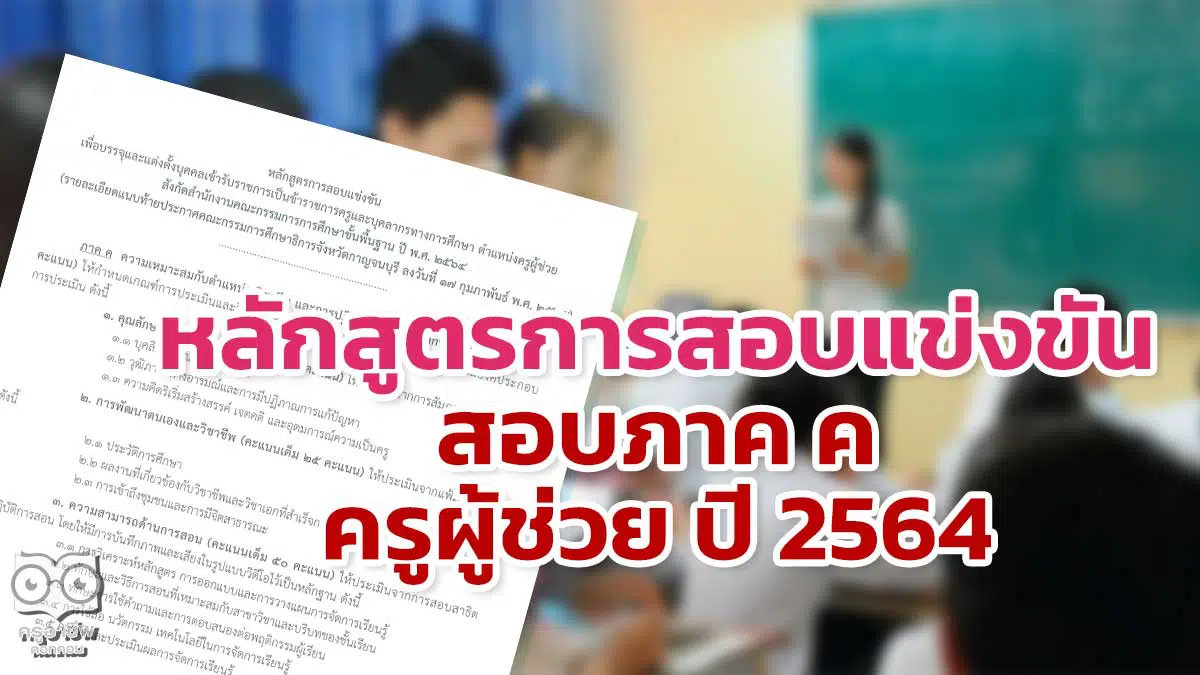 หลักสูตรการสอบแข่งขันตามเกณฑ์การประเมินและวิธีการให้คะแนน ภาค ค ความเหมาะสมกับตำแหน่ง วิชาชีพและการปฏิบัติงาน สอบภาค ค ครูผู้ช่วย ปี 2564