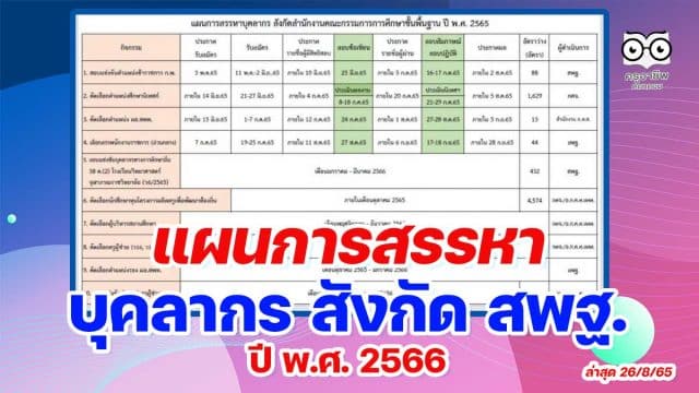 แผนการสรรหาบุคลากร สังกัด สพฐ. ปี 2565 ล่าสุดมาแล้ว กำหนดสอบแข่งขันครูผู้ช่วย รอบทั่วไป ปีพ.ศ.2566 ช่วงเดือน พ.ค.-ก.ค.66