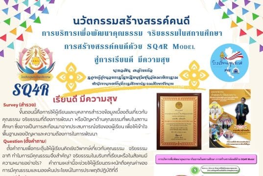 เผยแพร่ผลงานนวัตกรรมสร้างสรรค์คนดี “SQ4R ปลูกต้นกล้าคุณธรรม” นวัตกรรม คุณธรรมนำความรู้โดยใช้รูปแบบ SQ4R