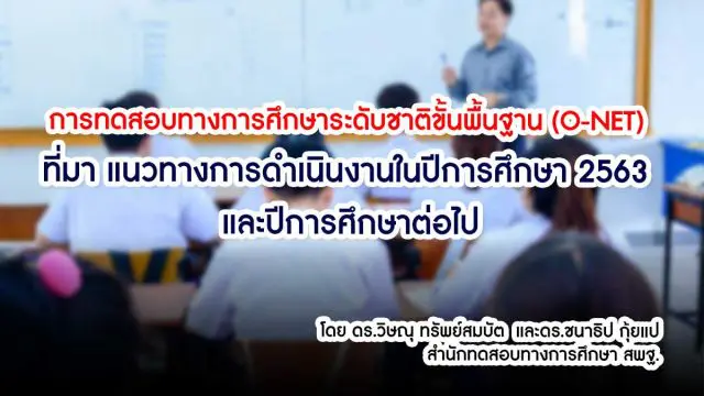 การทดสอบทางการศึกษาระดับชาติขั้นพื้นฐาน (O-NET) : ที่มา แนวทางการดำเนินงานในปีการศึกษา 2563 และปีการศึกษาต่อไป โดย ดร.วิษณุ ทรัพย์สมบัติ* และดร.ชนาธิป กุ้ยแป* *สํานักทดสอบทางการศึกษา สพฐ.