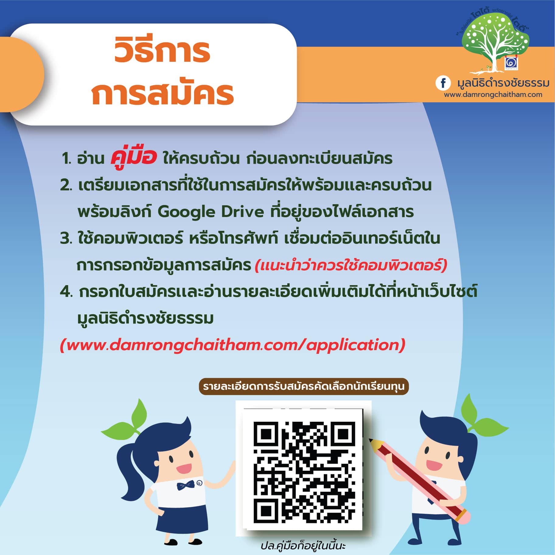 สามารถเข้าดูรายละเอียดเพิ่มเติมและทำการสมัครได้ที่ Website:: http://www.damrongchaitham.com/application/