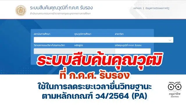 ระบบค้นหาคุณวุฒิที่ ก.ค.ศ. รับรอง เพื่อใช้ในการสมัครสอบครูผู้ช่วย/ลดระยะเวลายื่นวิทยฐานะตามหลักเกณฑ์ ว4/2564 (PA)