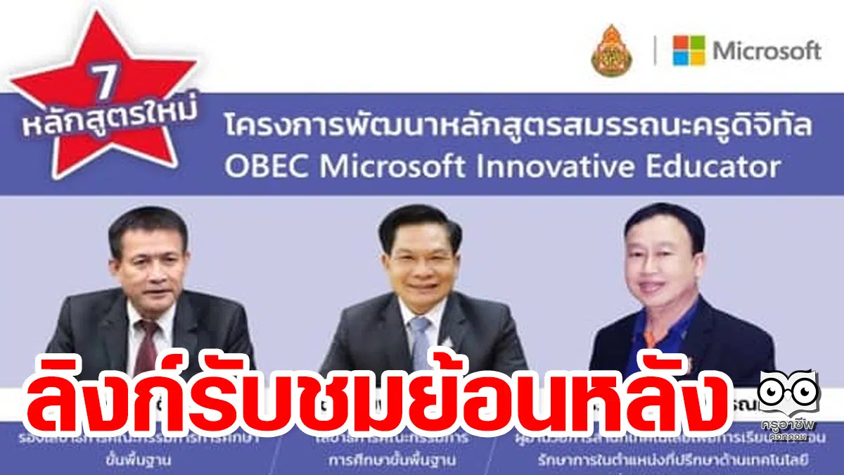 ลิงก์รับชมย้อนหลัง โครงการพัฒนาหลักสูตรสมรรถนะครูดิจิทัล OBEC Microsoft Innovative Educator