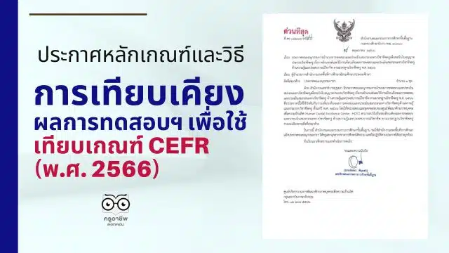 ประกาศหลักเกณฑ์และวิธีการเทียบเคียงผลการทดสอบฯ เพื่อใช้เทียบเกณฑ์ CEFR (พ.ศ. 2566) คุณครูสามารถนำไปใช้ประกอบการลดระยะเวลาตาม ว4 (จาก 4 ปี เหลือเพียง 3 ปี จาก PA 3 รอบปีงบ เหลือ 2 รอบปีงบ)