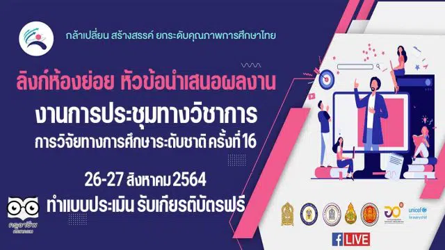 คุณครูเช็คที่นี่ !! ลิงก์ห้องย่อย งานการประชุมทางวิชาการ การวิจัยทางการศึกษาระดับชาติ ครั้งที่ 16 ทำแบบประเมิน รับเกียรติบัตรฟรี จากสภาการศึกษา