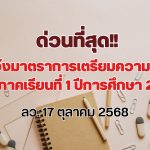 - ด่วนที่สุด มาตราการเตรียมความพร้อมการปิดภาคเรียนที่ 1 ปีการศึกษา 2568 ลว. 17 ตุลาคม 2568
